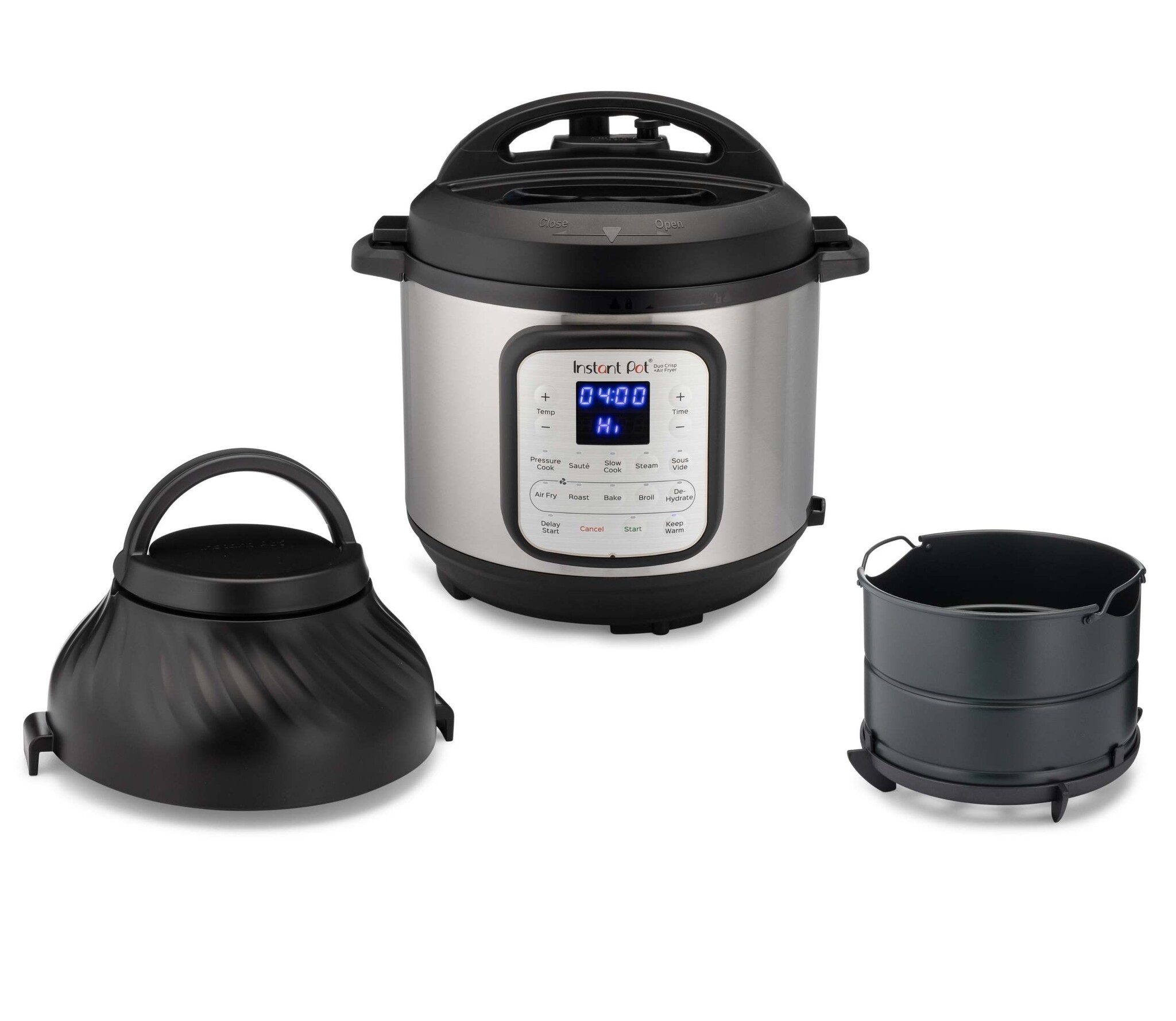 De Instant Pot Duo Crisp 5,7L Multicooker combineert een volledige Instant Pot multicooker met een krachtige airfryer in één toestel. Dankzij de twee meegeleverde deksels schakel je eenvoudig tussen langzaam garen, snelkoken of krokant afbakken met de airfryer.
