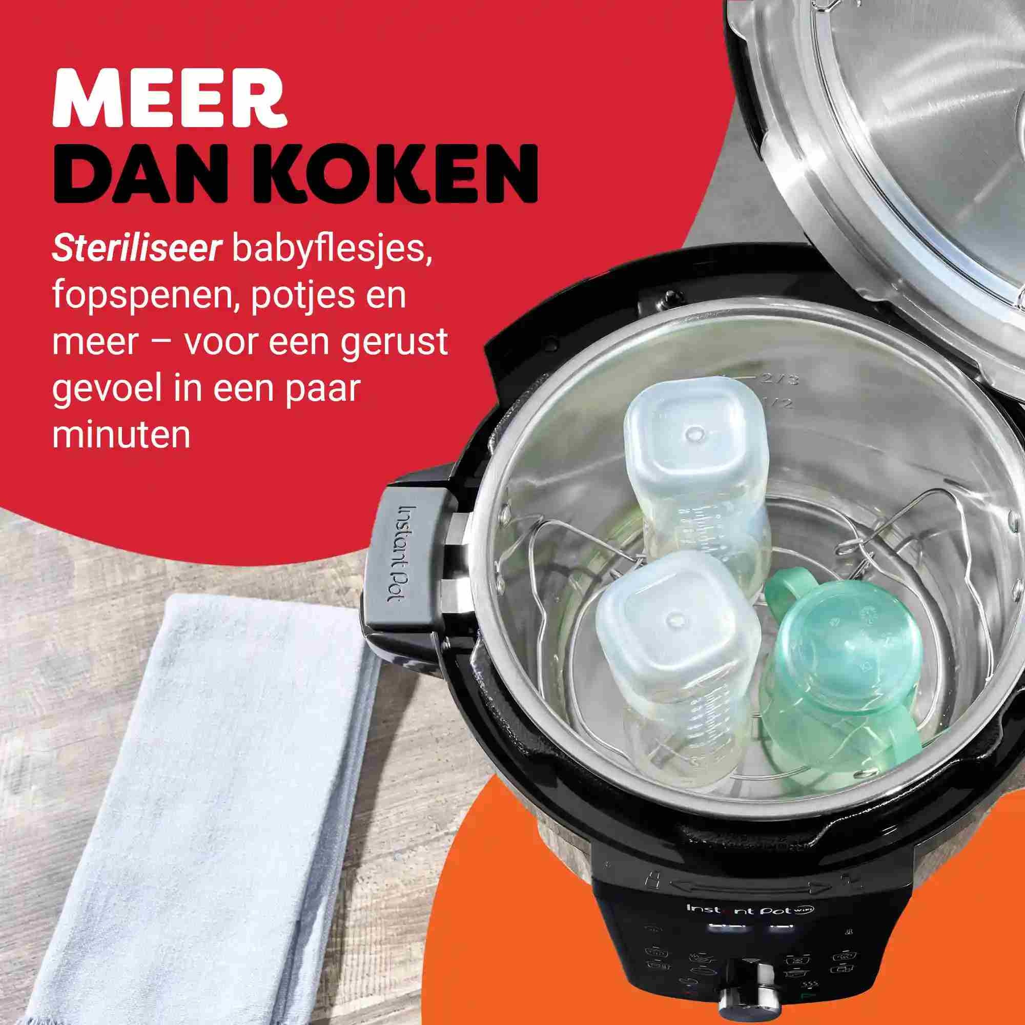 - 9-in-1 functionaliteit: snelkoken, slowcooken, sauteren, stomen, rijst, yoghurt, sous-vide, steriliseren, warmhouden