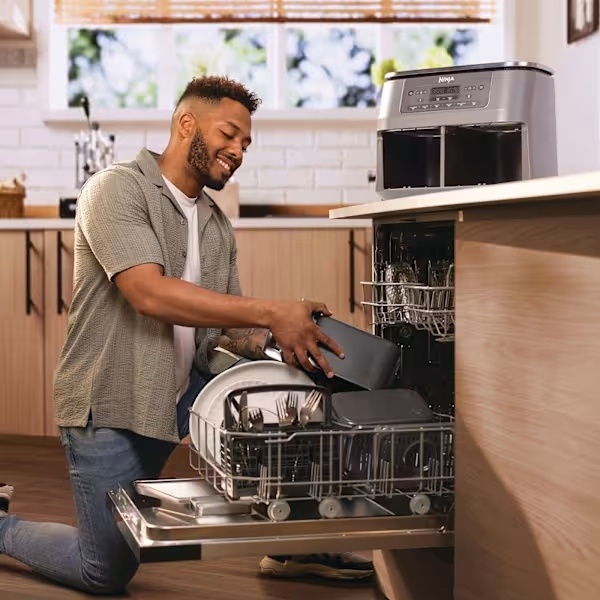 De anti-aanbaklades en crispplaten zijn vaatwasserbestendig, waardoor schoonmaken snel en gemakkelijk is.
