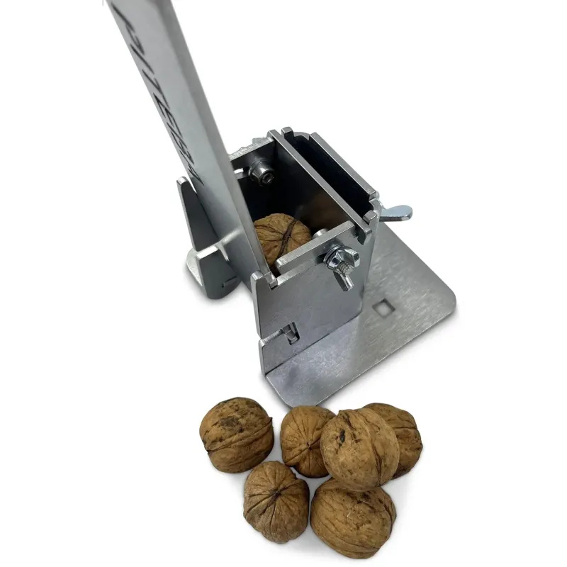 Perfecte notenkraker. Gebruik hem voor amandelen. Aanrader. Heb er zelf even met hout een 'voet' onder genaakt zodat ik de kraker met klemmen aan de tafel kon vastzetten.